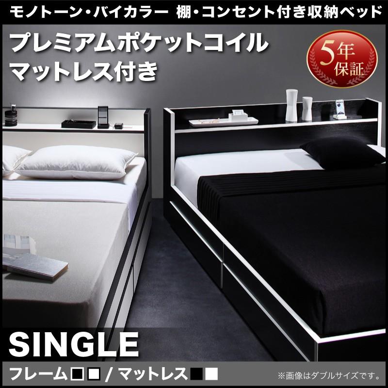 代引不可 ベッド モノトーン バイカラー 棚付き コンセント付き 収納ベッド Fouster プレミアムポケットコイルマットレス付き シングル Cs ジンショッピング 通販 Yahoo ショッピング 72時間限定タイムセール Marve Hn